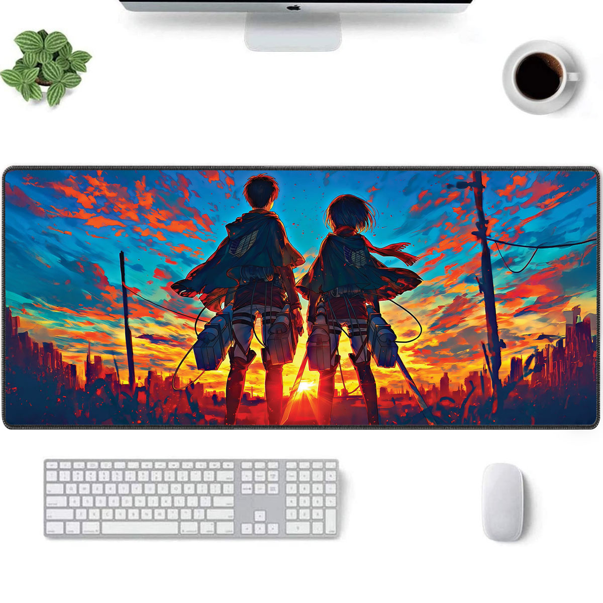 Attack on Titan Desk Mat – Eren Yeager & Mikasa Ackerman Sunset Design