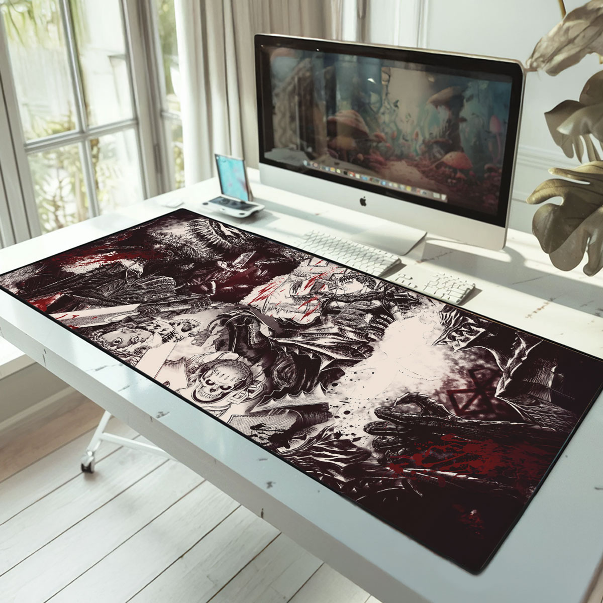 Dive into the dark world of Berserk with this manga-inspired desk mat from Neko Mouse Pads. Featuring Guts in a fierce battle scene, this oversized mouse pad brings raw intensity to your workspace. The smooth surface guarantees accurate mouse tracking, while the anti-slip rubber base keeps it firmly in place. With stitched edges for durability, it’s the ideal companion for both hardcore gamers and Berserk fans who want their desk to reflect their passion.