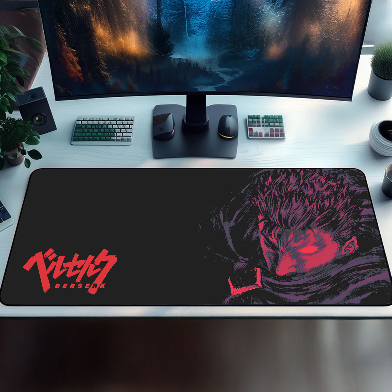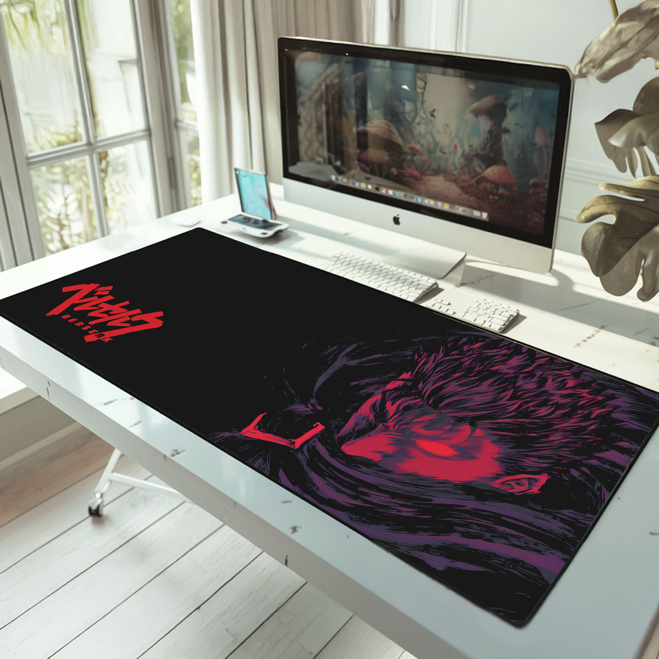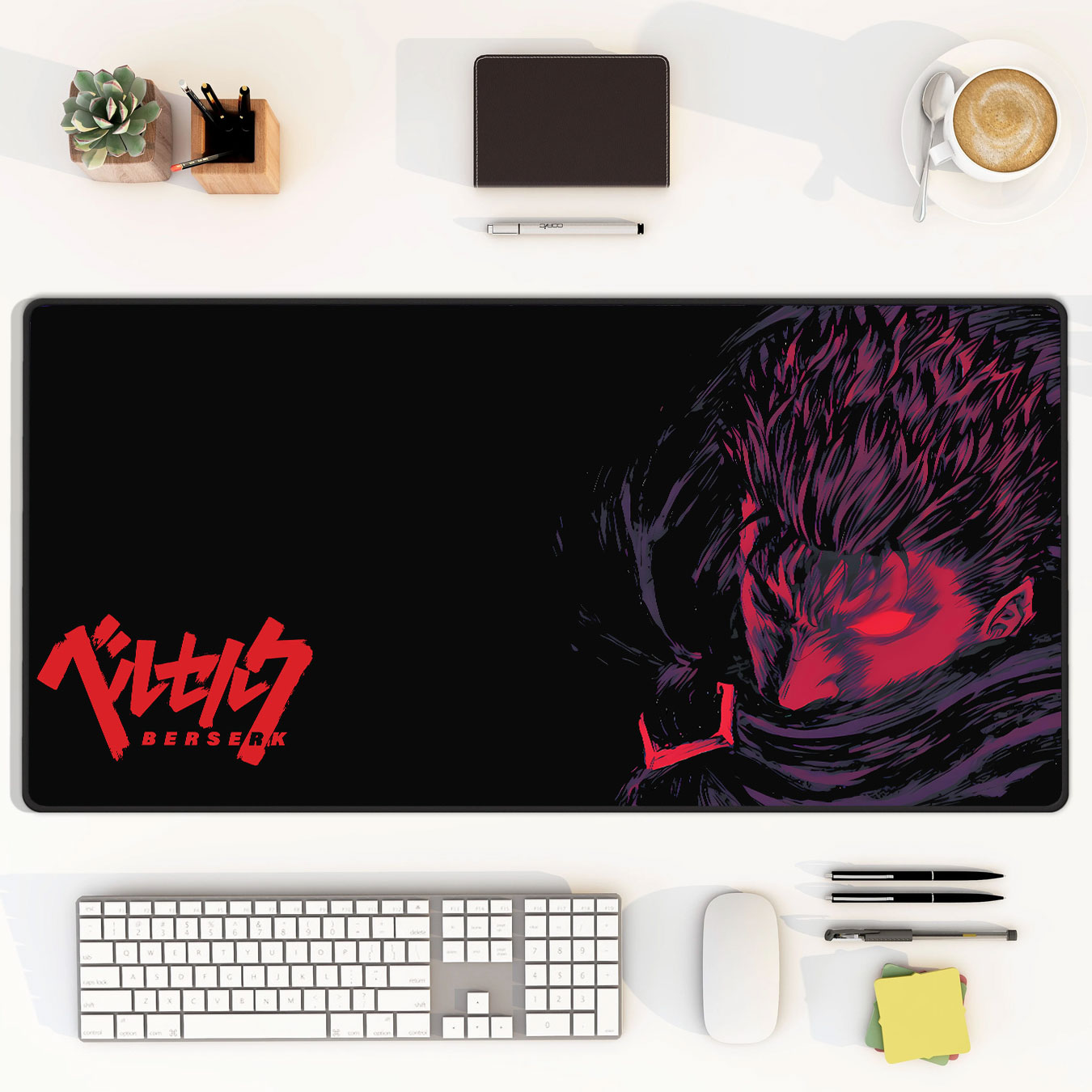 - Unique Berserk Artwork – Striking minimalist portrait of Guts in red and black, creating a bold, dramatic focal point.