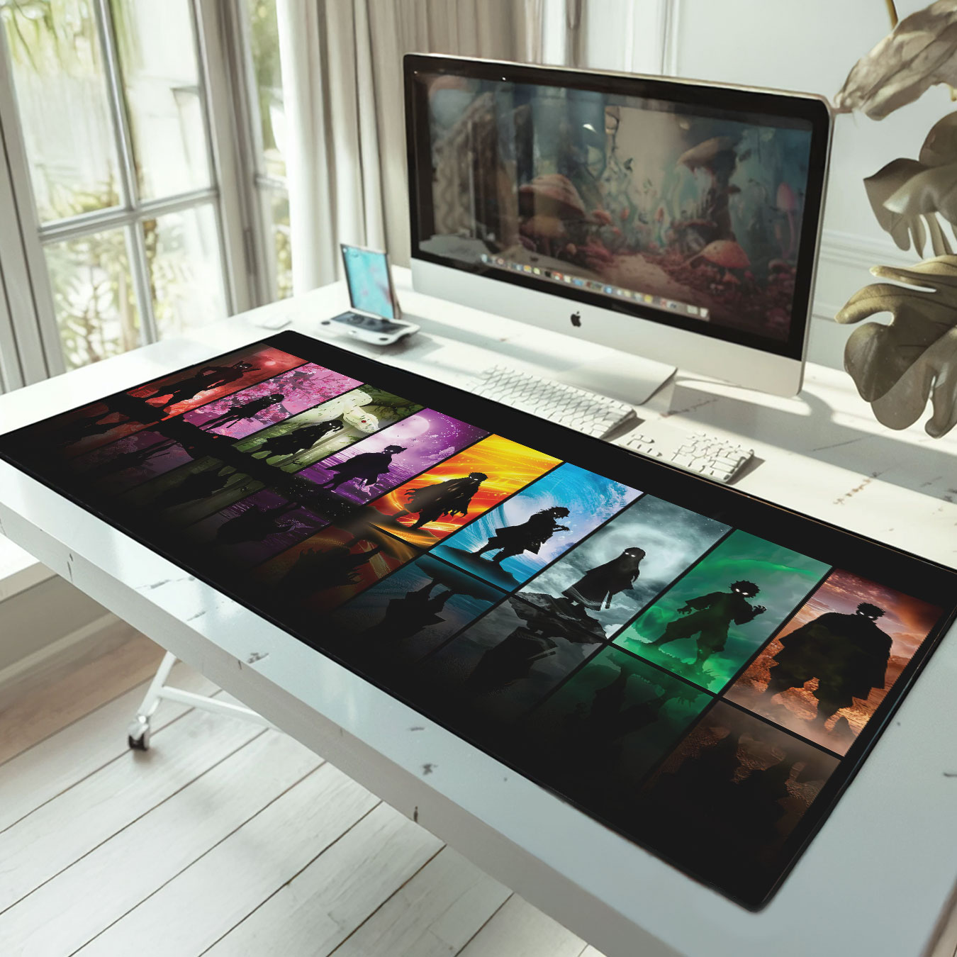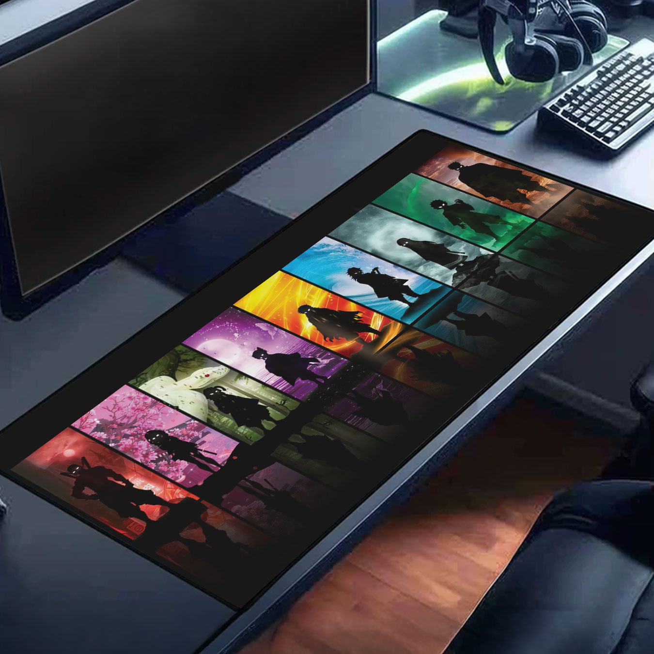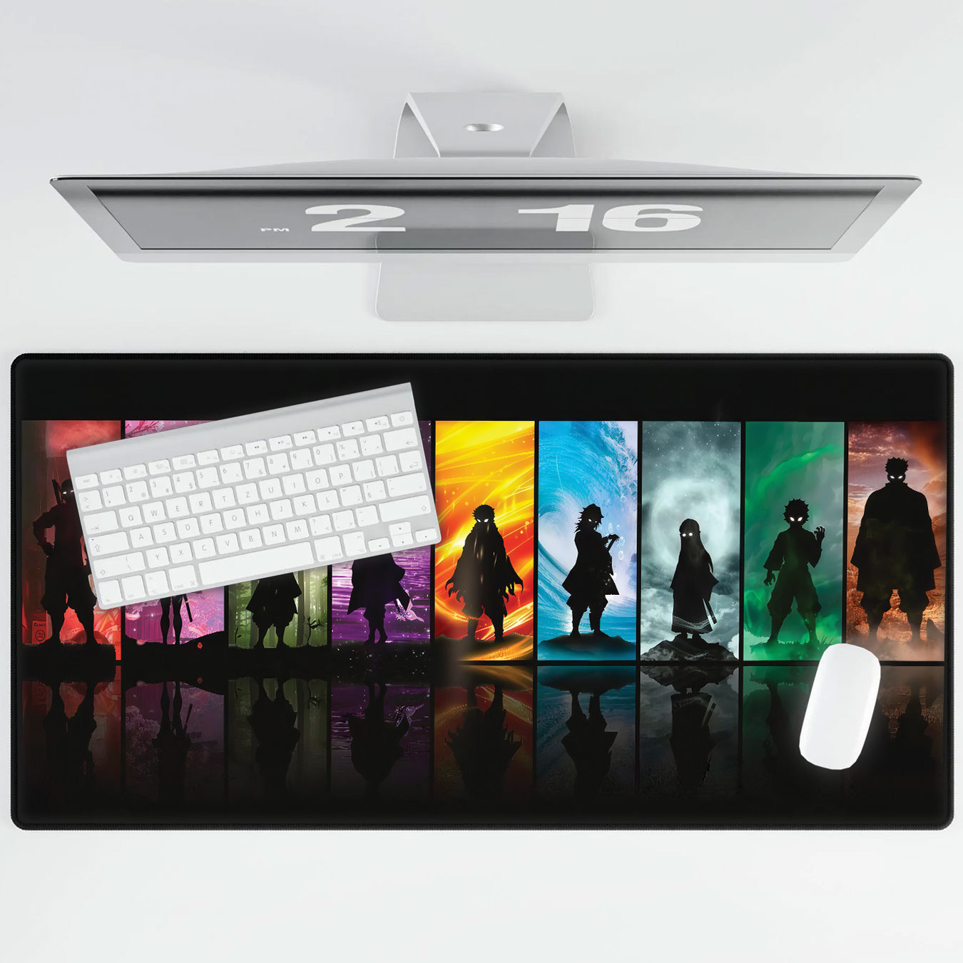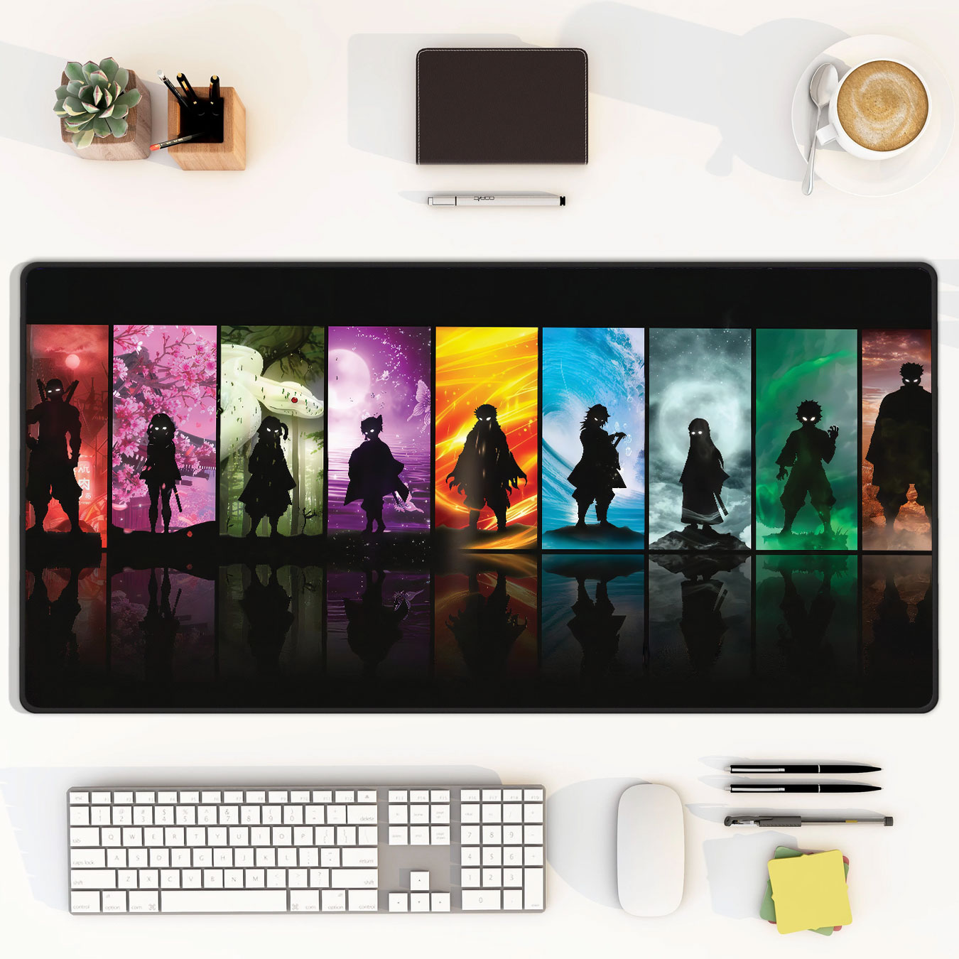 Extra-large desk mat with stunning multi-color Demon Slayer silhouette design