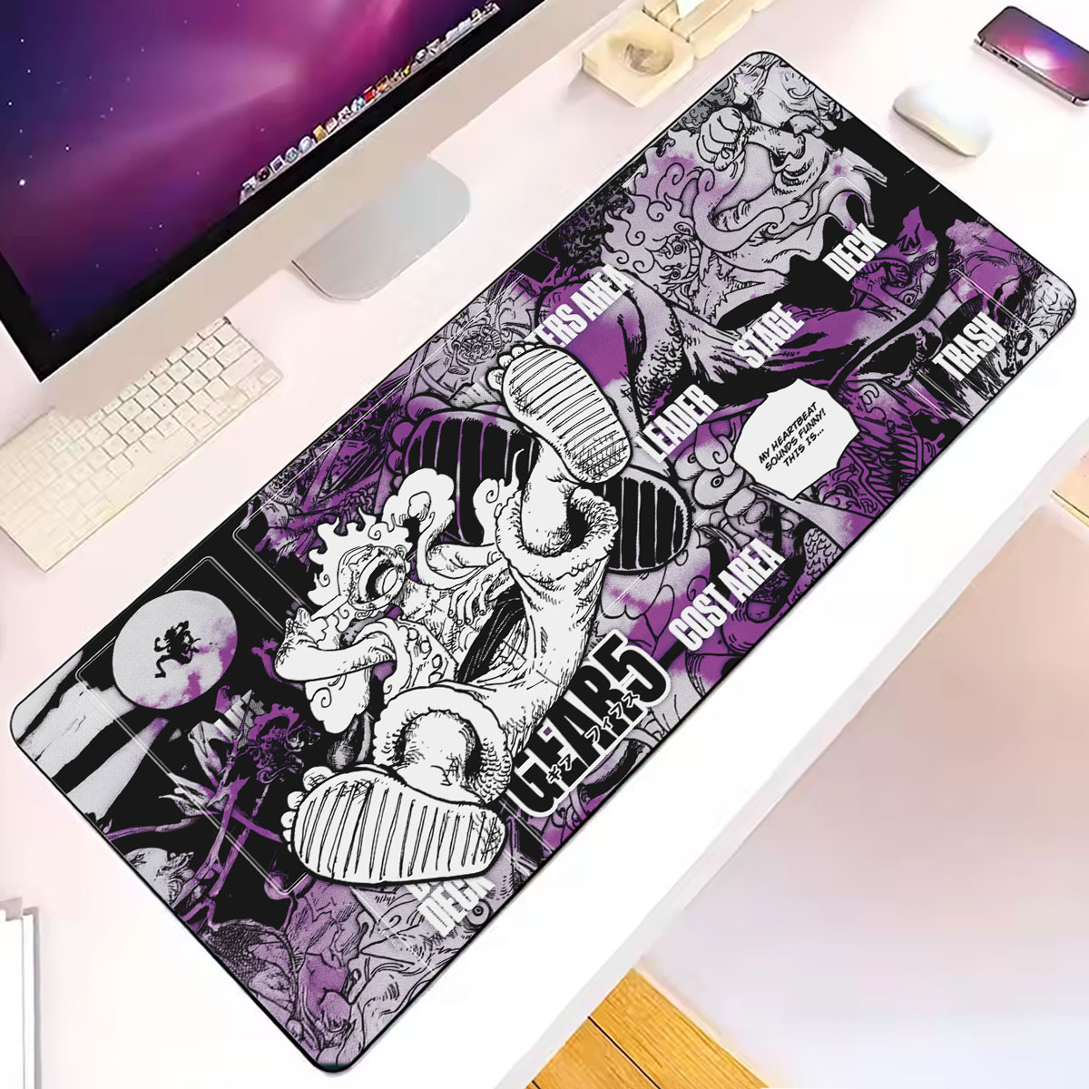 Luffy Gear 5 Manga Style Mouse Pad – One Piece Battle Desk Mat