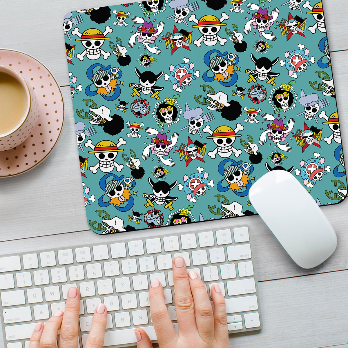 - Original Design Mouse Mat – One Piece Chibi Pirates Mouse Pad. Featuring a colorful mix of Straw Hat Jolly Rogers in fun, cartoon style. Perfect for fans who love playful vibes.