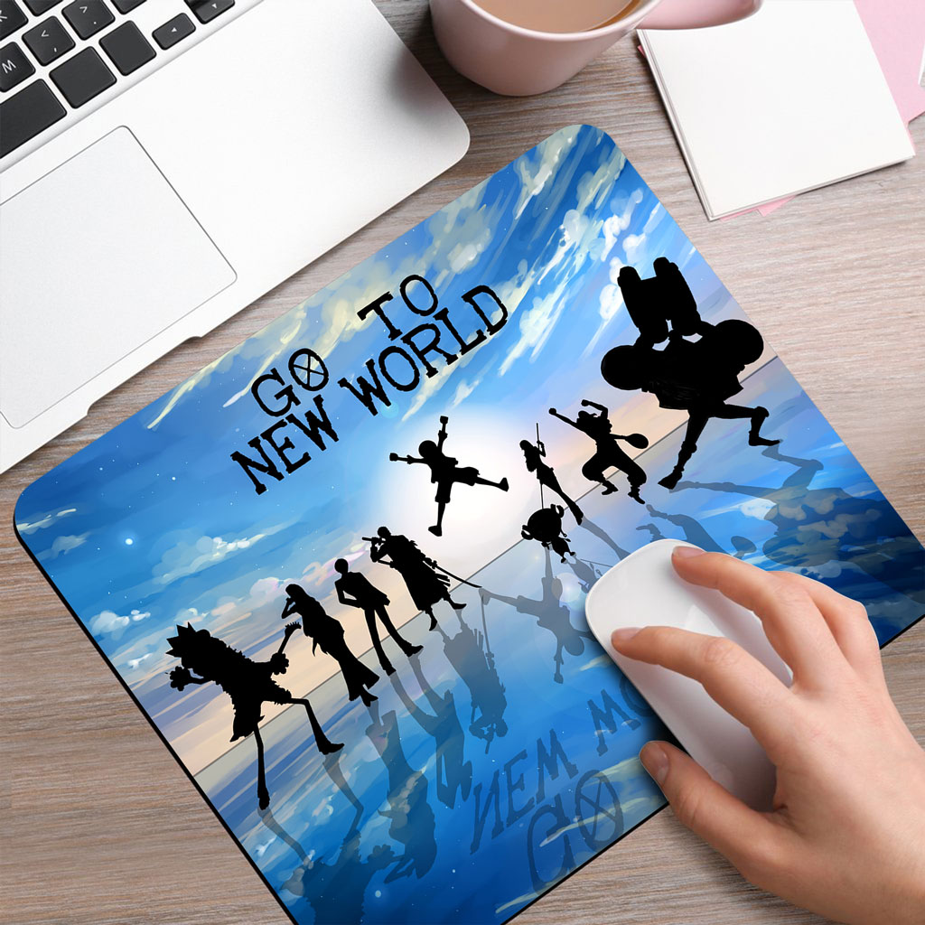 - Original Design Mouse Mat – Go to New World Mouse Pad. Featuring the full Straw Hat Crew in silhouette with a stunning sky reflection background. Bold, inspiring, and full of heart.