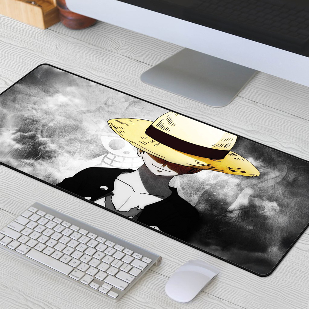 One Piece Luffy Anime Desk Mat Black White Straw Hat Design