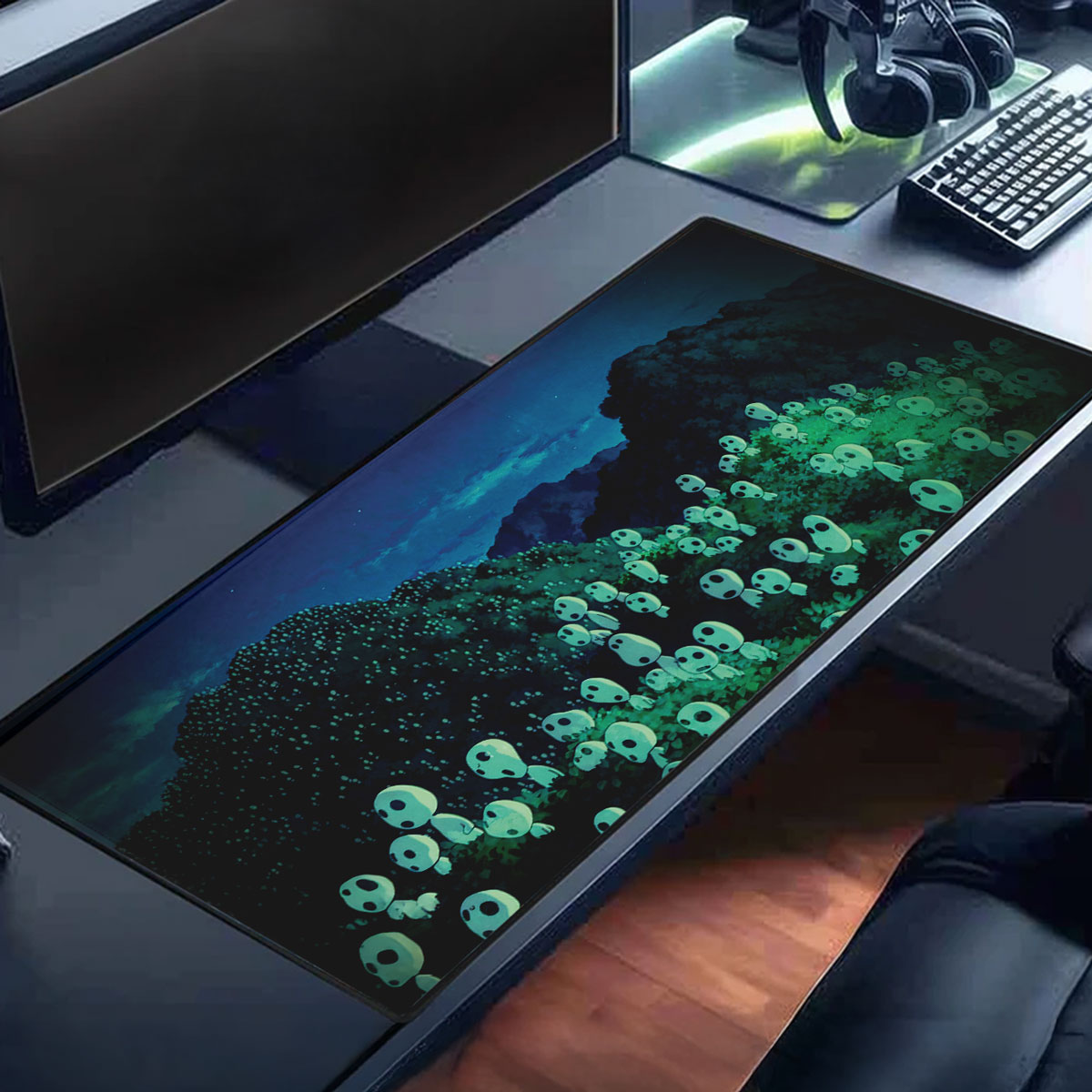 Princess Mononoke Anime Desk Mat Kodama Forest Spirits Night Design