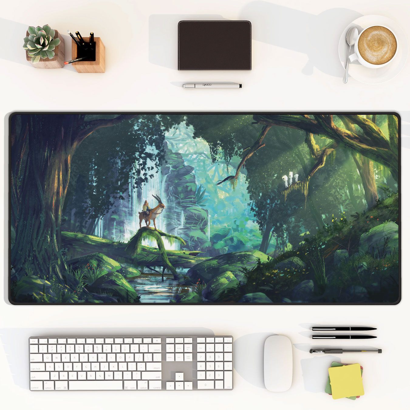 Princess Mononoke Fantasy Forest Illustration Desk Mat
