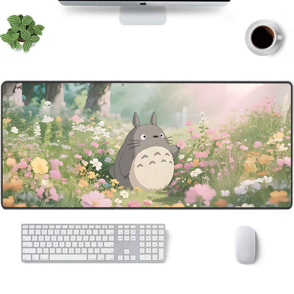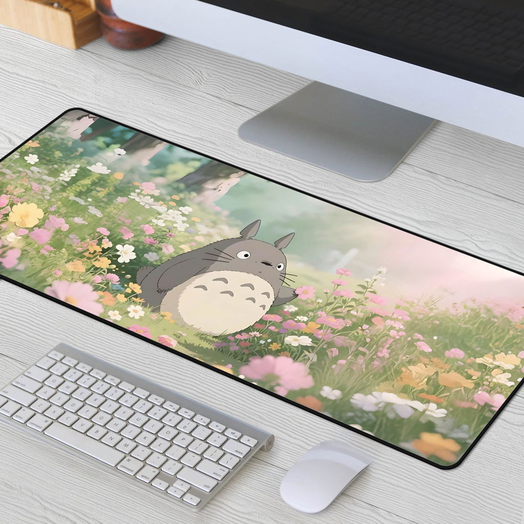 Totoro Anime Mouse Pad Pastel Green Floral Design Desk Mat